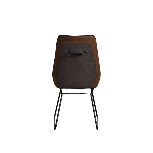 This chair has giving users some form of arm support without taking up additional space.2-Tone Brown Fabric Contemporary dining chair with handle a slightly deep seat area that’s great for tall users. Upholstered Dining Chair is the perfect update for stylish seating in your dining area. Exuding style and elegance with a fully upholstered frame and black powder coating metal legs.