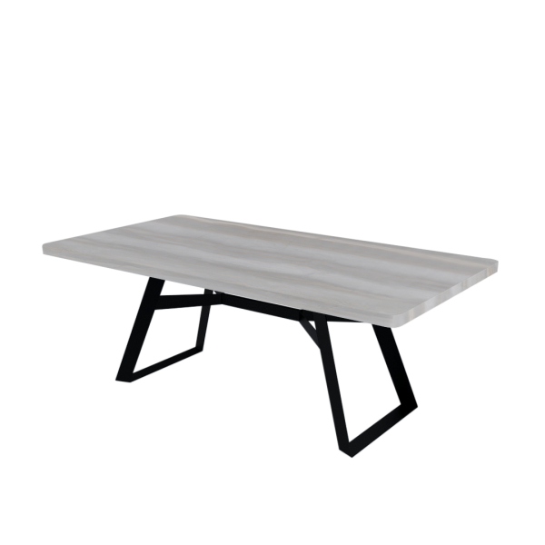 Grey Rectangular Marble Dining Table with Black Metal Base (8-seater)